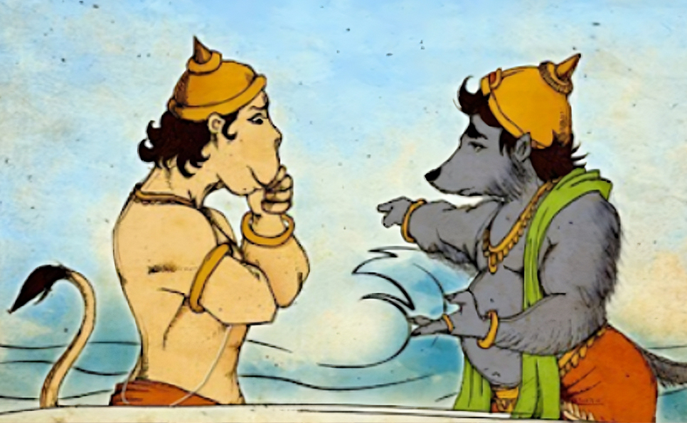 During the search for Sita, Hanuman and his vanara army face many obstacles and challenges. They reach a point where they become fatigued and begin to lose hope. It is at this juncture that Jambavan, the elderly and wise bear, comes forward to remind Hanuman of his true potential.